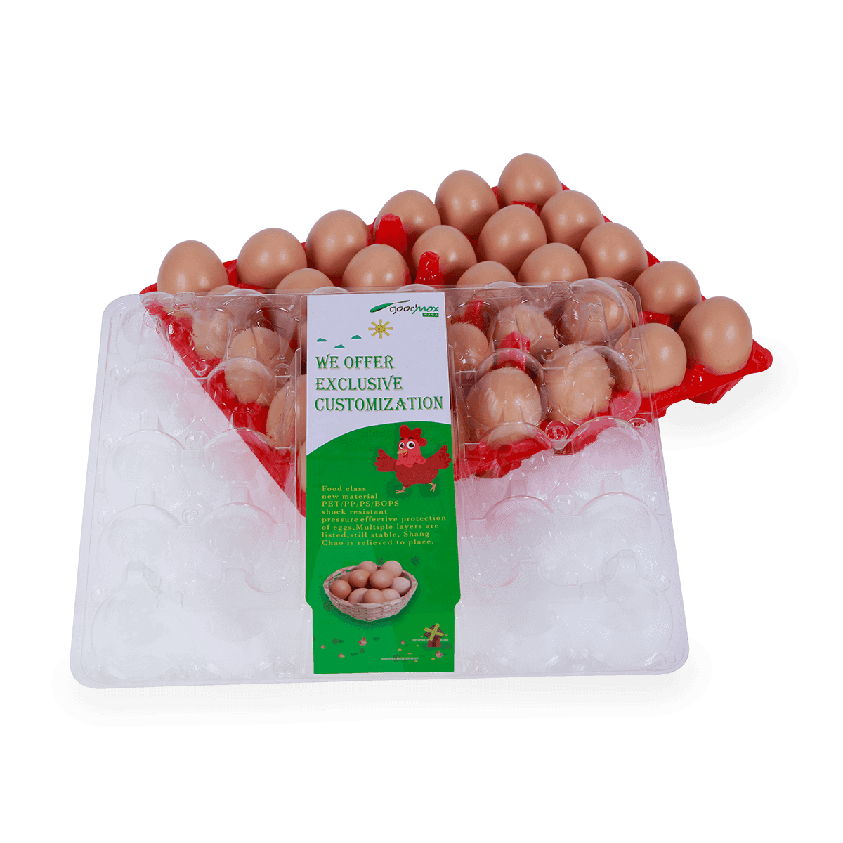 家禽養殖場30孔雞蛋盒廣泛用于家庭供應、超市和家禽養殖場。它具有高清視野、外形和易裝卸的結構,以保證雞蛋的安全和快速包裝。還可以讓雞蛋之間保有距離,更透氣,使雞蛋儲存時間更久。